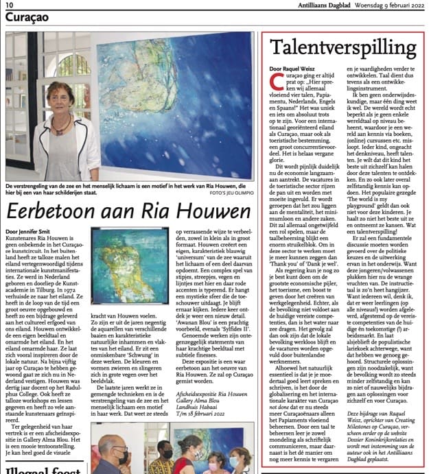 I am so excited that my column “Talentverspilling” was published once more in the newspaper Antilliaans Dagblad. This column was first published on Dossier Koninkrijksrelaties, a Dutch online platform.